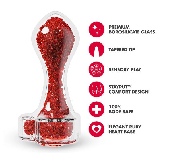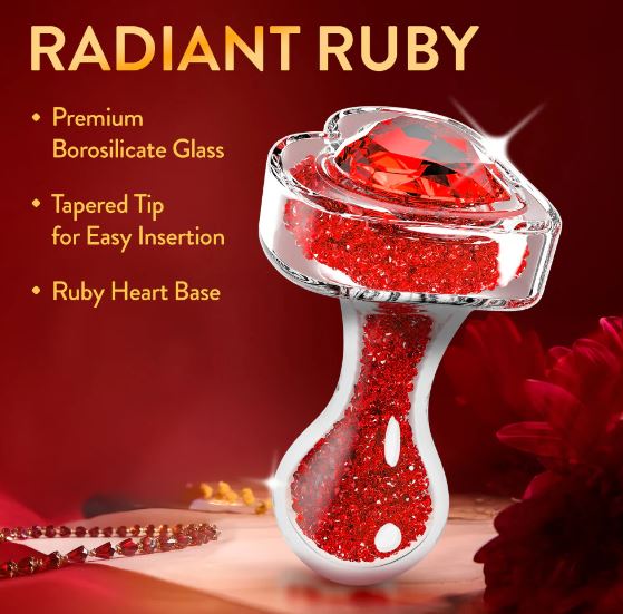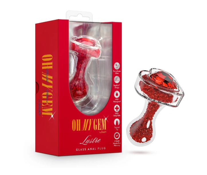 Radiate beauty with Oh My Gem Lustre, a luxurious anal plug inspired by the rich energy of the ruby gemstone. Meticulously crafted from premium borosilicate glass, Lustres smooth, rounded bulbous tip provides increased stimulation and a satisfying sense of fullness, making every moment more indulgent. Designed for elegance and excitement, its dazzling ruby-adorned heart-shaped base adds a touch of sophistication to every experience. Blushs signature StayPut design ensures a secure, comfortable fit, while the pristine glass surface delivers satisfying pressure and precise stimulation. Perfect for temperature play, Lustre invites you to explore warm or cool sensations for an extra layer of pleasure. Body-safe, easy to clean, and undeniably beautiful, Lustre is a gem made for indulgence. A radiant addition to any collection, designed to captivate, comfort, and inspire intimate exploration.Color: RedMaterial: Borosilicate GlassLength (Inches): insertable 2.5 , 3.25