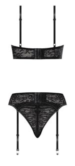 OOH LA LACE DEMI BRA GARTER & TANGA BLACK 2XL