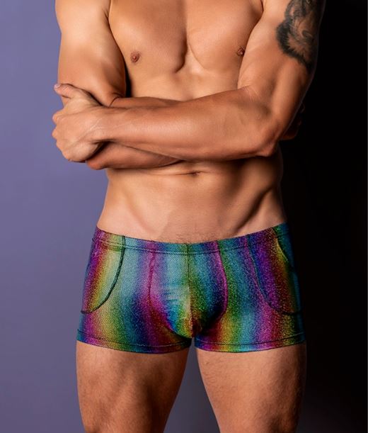Add a splash of color and functionality to your store’s offerings with our men’s rainbow underwear from the Pack & Play collection by Male Power. The Pocket Short is designed with front hip pockets, perfect for concealing your most private valuable goods. Featuring a low-cut slimming waistband and high-cut legs, this underwear delivers both style and comfort. The contoured uplift pouch provides extra support and a flattering fit, making it a standout piece in any men’s underwear collection. Ideal for retailers looking to offer playful, high-quality men’s underwear that combines practicality with vibrant, eye-catching design.