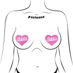 Pastease Bride Pink Heart pasties. Love Bride Doll Pasties Pink Iconic Heart Nipple Covers by Pastease. Introducing Bride Doll Pastease: Embrace Your Inner Icon with Timeless Elegance! Elevate your bridal ensemble and bachelorette night with our Bride Pastease a fun celebration of love and femininity that pays homage to the spirit of America’s favorite doll. With the iconic pink and white lettering, these nipple covers by Pastease are a symbol of grace and charm that perfectly complement your special day. Dimensions 3 inches by 2.5 inches. Coverage 1.8 inches. Timeless Barbie Style Lettering to evoke a sense of nostalgia and classic charm with the Bride lettering. The pink and white hues capture the essence of being that type of girl in that type of world. Curves and comfort. Crafted from a soft Polyester blend material, our breast pasties are designed to form seamlessly to your curves, ensuring a comfortable and secure fit that complements your natural beauty. A Bridal Must Have. Perfect for bachelorette parties, bridal showers, and as a playful accessory beneath your gown, these Pastease add a touch of flirtatious elegance to your journey to the altar. Celebrate the iconic. With a nod to America’s favorite doll, these Pastease capture the essence of timeless femininity, allowing you to step into the role of the radiant bride you have always dreamed of being. Versatile beauty. Beyond the big day, these Pastease can accompany you on honeymoon getaways, romantic date nights, or any moment when you want to embrace your inner elegance. Own Your Iconic Moment. The Bride Heart Shaped Pasties. Pastease are not just a breast accessory. They are a reflection of your journey as you embark on the new chapter in love and partnership you always dreamed of. Radiate beauty, grace, and charm on your special day with our Bride Pastease an homage to timeless elegance that lets you embrace your inner icon. Get yours today and step into the spotlight with confidence and grace. Categories: Lingerie, Clothing, Sexy Costume Accessories, Valentine’s Day, Risque Party Wear, Pasties and Accessories. Restricted, Amazon Restricted. 2024.