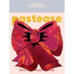 Pastease Brand Holographic Red Bows Pasties for the holidays. Red with Black accents Bow Nipple Pasties by Pastease are hand made in the USA of durable no mess glitter pleather material that forms to curves and resists wrinkling over hardening nipples. Just peel and stick on clean, dry skin. All Pastease feature latex free, medical grade, waterproof adhesive that stay securely in place for as long as you like and until they are gently removed. Conceal or reveal with Pastease nipple pasties when worn with a sexy outfit, daring bikini, sheer top, revealing dress, Hefty bag, body lotion, crazy costume, party theme or nothing at all! Use these Red Bow Nipple Pasties to put the perfect finish on your lovely gifts! Dimensions 3.3 inches by 3.1 inches. Coverage diameter 1.9 inches. Categories: Lingerie, Clothing, Sexy Costume Accessories, Nipple Play, Pasties and Accessories. Love Pastease! Restricted, Amazon Restricted. Video. Primary image package. 2023-2024 Catalog.