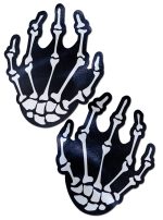 Pastease White Skeleton Hands Pasties. White Boney Skeleton Hands on Black Nipple Pasties by Pastease. White Boney Skeleton Hands by Pastease are hand made in the USA of soft form fitting material that forms seamlessly to curves and resists wrinkling over hardening nipples. Easy to use. Just peel and stick on clean, dry skin! All Pastease feature latex free, medical grade, waterproof adhesive that stay securely in place for as long as you like and until they are gently removed. Conceal or reveal with Pastease nipple pasties when worn with a sexy outfit, daring bikini, sheer top, revealing dress, Hefty bag, body lotion, crazy costume, party theme or nothing at all! Dimensions 4.5 inches wide by 3.7 inches tall. Coverage diameter 2.5 inches. Pastease are the fun maker that brings out your inner Tease! Go get your sexy fun freedom on by Pastease Brand Pasties! Pastease Brand – Skeleton Hands Pasties. New primary image package. Categories: Lingerie, Clothing, Sexy Costume Accessories, Halloween Costumes, Pasties and Accessories. Restricted, Amazon Restricted. 2022.