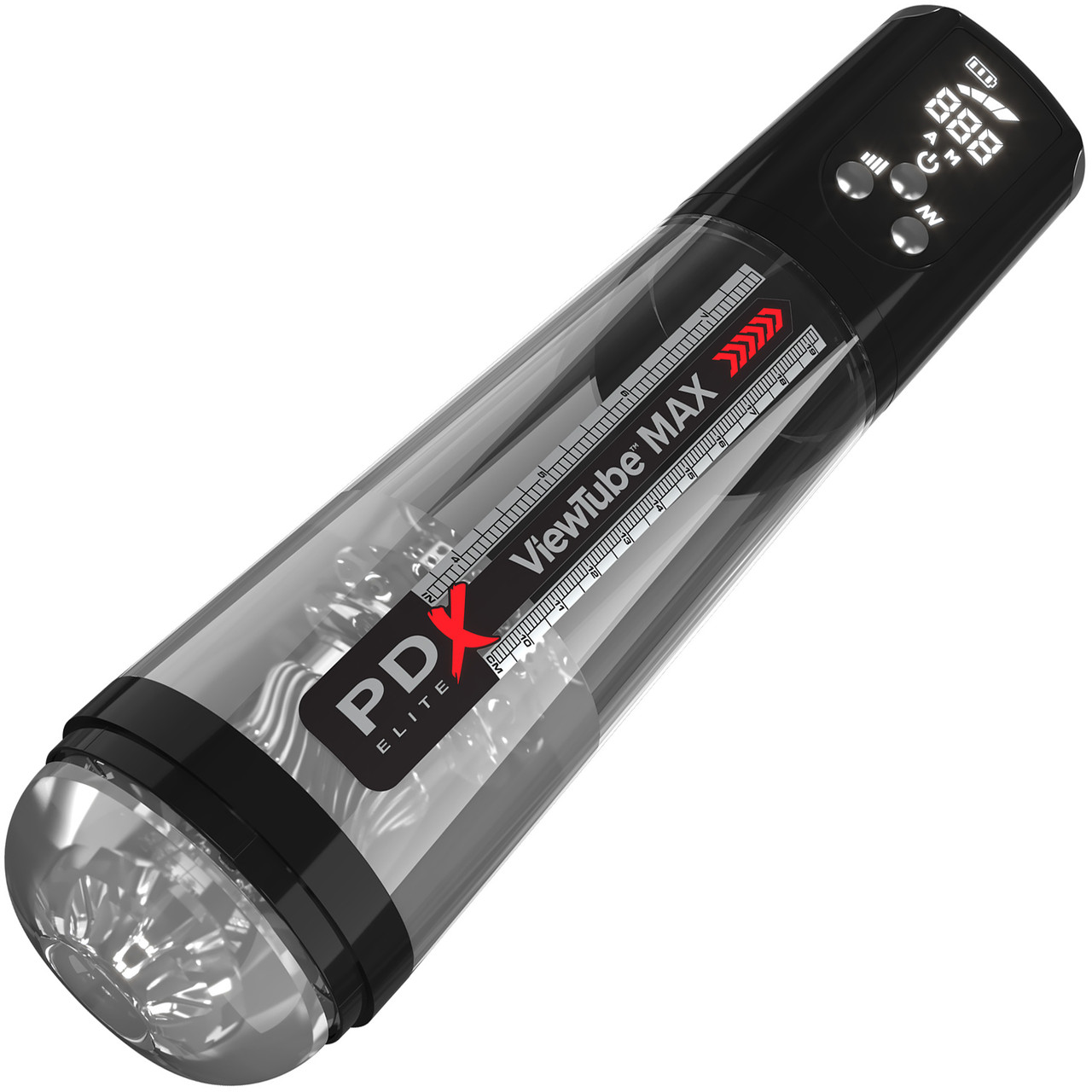 The PDX ELITE VIEWTUBE MAX VIEW elevates masturbation with powerful intermittent suction for the ultimate stroker experience. It’s a perfect storm of sensation for heightened solo sex sessions that can be customized to your personal moods!Get ready for explosive push-button suction, surrounding your penis with ultrasoft automatic sucking action! So what are you waiting for? Stick it in and view your cock magnifying to the MAX!The ViewTube Max View is the latest addition to the ViewTube Collection creating a hybrid design of the best selling PDX Elite Fuck-O-Matic with Intermittent Suction and the Pump Worx Max Boost Pump.INTERMITTENT SUCTION TECHNOLOGY: The ultra-strong motor provides 4 patterns of pleasurable suction modes. Intermittent sucking automatically sucks your penis into the ultra-soft sleeve for pleasures beyond your wildest dreams!PERSONALIZE YOUR SUCTION: Enjoy 4 modes of automatic intermittent suction patterns, or manually control the suction patterns yourself! Increase the suction pressure to maximize stimulation to your penis, to tease and please!ULTRA-SOFT SLEEVE: The extraordinary feel of the ultra-soft sleeve caresses your penis with every suck from the powerful motor. The unique texture wraps around your entire shaft while the ViewTube Max View automatically strokes and vibrates for mind-blowing stimulation!ILLUMINATED LED LIGHTS: Add to the fun and watch your manhood get showered with an array of colored lights as you get stroked and sucked!USB MAGNETIC CHARGING: Ready when you are! Easily and conveniently rechargeable with included magnetic charging cord, offering hours of enjoyment.