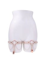 Sweet, sexy, and impossible to ignore, these luscious Peaches N CreaMe Garters are made to turn heads and raise pulses. Crafted from soft faux leather and adorned with delicate pearl strands, a gleaming rose gold O Ring, and functional garter clips, they blend elegance with irresistible edge. Fully adjustable for a perfect fit, they wrap your thighs like a sensual secret, tempting anyone within view to take a closer look or a daring bite. The secure clips hold your thigh highs in place, letting you strut with confidence and command attention at every step. Seduce with style, tease with power, once they catch a glimpse, theyll follow your lead without question. Features: Fits thighs 18 – 26 (45cm – 66m) Lustrous pearl chains add a soft, flirtatious edge Built-in clip to secure stocking placement