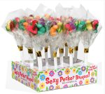 Sexy Penis Bouquet Display 12 Pieces from Candyprints. Tasty and titillating, your recipient is sure to love sucking on these tasty peckers all day long! Each penis bouquet features 6 brightly colored sets of penises in red, orange, yellow, pink, purple and teal, all wrapped up in patterned cellophane and tied with a small heart tag for your message. This display holds 12 bouquets and is perfect for placing on a counter or register for impulse purchases. Color: red, orange, yellow, pink, purple, teal. Type: Adult Candy, Counter Display. Count: 6 lollipops per bouquet with 12 bouquets. Penis Bouquet Display from Candyprints. Makers of fine risque candy and risque party goods. Candyprints – Penis Bouquet. Categories: Party Games, Gifts, Supplies, Adult Candy and Erotic Foods, Party Favors, Lollipops. Please note new package old red and new bright yellow. Plus red heart tag is no longer present. 2023.