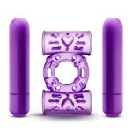 Play With Me Double Play Dual Vibrating Cock Ring Purple. Discover intense pleasure during lovemaking with Double Play Vibrating Cock Ring. Each of the vibes is powered by one AAA battery. Your ring features 2 bullets that emit deep thumping vibrations that will please both partners simultaneously. Stretch the ring around the base of the penis and push the button to start the vibrations. Use the ring and bullet together, use just the bullet, or use just the ring. The perfect couples toy and the perfect solo toy as well. Features: comfort soft, stretchy ring ideal for wearing on your shaft or behind your balls. Easy to use. 1 vibrating speed vibe and rated IPX7 waterproof. So it is easy to clean. Power. No watch batteries! Vibrating cock ring requires 2 AAA batteries, not included. Peace of mind. Made from Thermoplastic Elastomers TPE. Contains no fragrances, phthalates or latex. Size 3.25 inches width by 1.6 inches length. Blush Novelties – Play With Me. Categories: Vibrators, Love Rings, Couples Cock Rings Love Rings. Restricted, Amazon Restricted. 2022.