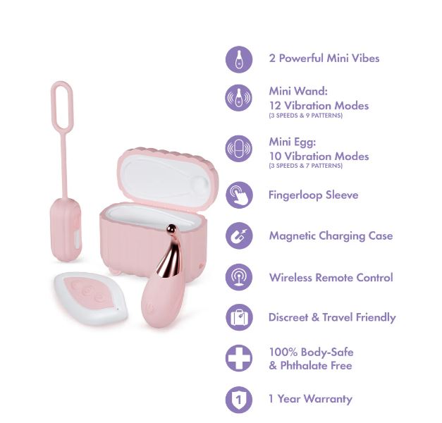 Let your fantasies soar with Play With Me Wanderlust. This irresistible vibe set is perfect for solo exploration or intimate moments with a partner, offering pleasure at your fingertips anytime, anywhere you go. Unpack your desires and drift into bliss with this chic, suitcase-inspired charging case that keeps everything discreet and ready for fun. Inside, youll find two powerful mini vibes: a precision wand with 12 enticing vibration modes for pinpoint pleasure, and a wireless, remote-controlled egg with 10 thrilling vibration settings for deep internal sensations. The silicone finger loop sleeve ensures a comfortable, secure grip, making it easy to control every pulse and vibration. With USB recharging for convenience, Wanderlust is always ready for your next adventure in bliss. Just charge, turn it on, and let the ecstasy take flight!Color: PinkMaterial: ABS / SiliconeLength (Inches): insertable , Case: 1.5Circumference (Inches):Battery Runtime: Up To Wand: 120; Egg: 45 MinutesWarranty: 1 Year2 Powerful Mini Vibes, Travel-Friendly Charging CaseMini Wand With Precision Tip And 12 Vibration ModesMini Egg Vibrator With 10 Powerful Vibration ModesIncludes Wireless Remote Control & Fingerloop Sleeve100% Body-Safe, Travel-Friendly & USB Rechargeable