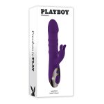 Playboy Hop To It Rabbit Vibrator from Evolved Novelties. The freedom to play is yours with Playboy Pleasure. You will love the way you feel when you Hop To It. This powerful velvet smooth Silicone Rabbit Vibrator features unique moving rings along its shaft that provide the sensation and movement of thrusting in a new way. The 3 thrusting speeds and 10 vibrating speeds and rhythms let you customize your pleasure. Experience unforgettable clitoral stimulation from the 10 speeds and rhythms of the external bunny. Specifications: unique 3 ring moving shaft Rabbit Vibrator. Materials: Body safe Silicone, Phthalate free, Latex free. Size height 9.25 inches, depth 3.06 inches, width 1.7 inches, diameter 1.53 inches. 3 thrusting shaft speeds. 10 vibrating shaft speeds and rhythms. 10 vibrating Clitoral speeds and rhythms. Hold power button for 2 seconds to turn on/off. Additional buttons control vibrations and speeds. Magnetic USB Rechargeable. Charging time 200 minutes. 90 minutes run time on high power. 110 minutes run time on low power. Waterproof vibrations. Submersible for easy cleaning and play outside the bedroom. 5 years manufacturer’s warranty. Care: only use a water based personal lubricant. Clean with a toy cleaner, rinse with warm water, pat dry dry before storage. Categories: Vibrators, Rabbit Style Vibrators, Rechargeable Vibrators, Sex Toys for Women, G-Spot Rabbit Style Vibrator. Play with me. Playboy and Rabbit Head design are registered trademarks of Playboy International. All rights reserved. 2023.