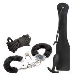 Step into a world where control meets comfort with the Pleasure Kits Bondage Collection, a curated set designed to enhance every aspect of your bondage play. This collection features a sturdy, double-stitched paddle for those who love a good spank, a smooth, tapered silicone probe for delightful placement stimulation, removable faux fur cuffs for soft yet firm restraint, and 16.5 feet of rope for the ultimate binding experience.Experience the thrill of dominance and submission as you wield the paddle, each smack echoing through the room, intensifying the atmosphere. The premium silicone probe is perfectly contoured to hit all the right spots, offering a silky-smooth experience that’s both comfortable and satisfying. Whether you’re a novice or a seasoned player, this kit provides the perfect tools to explore the dynamics of power play in style.The Pleasure Kits Bondage Collection offers excitement and comfort with cuffs equipped with a safety release and 2 keys. The cuffs’ plush faux fur offers a gentle caress against the skin, making restraint a luxurious pleasure. Plus, the included rope is 16.5 feet long making it highly versatile. Discover new ways to connect and explore as you and your partner tangle with dominance and submission.Whether you’re looking to experiment or deepen your existing practices, this collection invites you to unlock your deepest desires and explore bondage play in a safe, sophisticated manner.