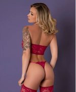 The Black Cherry Plunge Top with Removable Chaps & Cheeky Panty Set is a striking wholesale fishnet and lace lingerie set that offers shoppers style and versatility in one. Designed in a sultry combination of soft fine fishnet and romantic floral lace with scalloped edges, this 3-piece set can be worn two ways, maximizing customer appeal. The top features a plunging neckline with crisscross straps, paired with removable chaps for a daring twist, and a coordinating lace cheeky panty to complete the look. Available in deep black or passionately ruby red, this set is a strong seller for statement displays, gift collections, and fashion-forward lingerie assortments.