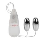Pocket Exotic Double Bullet Vibrator Silver from California Exotic Novelties. You will find a silver shine of pleasure glowing when you enjoy with these multi-speed vibrating bullets. The Pocket Exotics Vibrating Double Silver Bullets are made from ABS Plastic with Silver plating, making them safe, sensual and stimulating all in one shiny Silver package. If you crave vibrating bullets that offer smooth, sexy pleasure, then you have struck a vein of pure silver. These sensual Bullet Vibrators have everything you need to get what you want: the ultimate in sensual pleasure. The super satisfying stimulating Dual Silver Bullets offer shimmering multi-speed satisfaction in a smooth and sensual shape. Durable and thrilling, the pleasure is powerful with our high quality, Double Silver Bullet Vibrators. You will find the peak of pleasure and new levels of satisfaction, whether you enjoy these glittery Silver Bullets on your own or with a partner. Let these bullets aim for the heart of desire, and enjoy a truly exciting sensual adventure that really shines. For a bedroom experience that is utterly satiating these vibrating bullets just will not miss. Our stimulating dual silver bullets aim for pure pleasure and satiation. Double Sliver Bullet Vibrators are a versatile, compact, powerful and pocket sized! Multiple speed bullet vibrator. Safe and pure for body and pleasure. Made using phthalate free, non-toxic materials ABS Plastic with Silver Plating Bullets, ABS Plastic with Polypropylene PP Cote Power Controller. Two multiple speed vibrating Plastic Silver Bullets connected to the same power supply. Vibrating sex toy requires 2 AA batteries, not included. Do not leave batteries in the vibrator between uses. Bullet vibrator measures 2.1 inches long by 1 inch. Bulk weight: 3.5 ounces. Bullet vibrators can be used to stimulate the clitoris, nipples, anus. Sex toy can also be used in conjunction with Kegel exercise routines. Always clean before and after use plus between partners. 1 year warranty. Category: For Women Bullet, Beads, Balls, Bullets. Pocket Exotics Vibrating Double Silver Bullets is a registered trademark for California Exotic Novelties. Sex toys and sexual wellness. Categories: Bullets, Eggs, Sex Toys for Women, Men, Couples, Vibrating Bullets, Eggs, Dual Vibrating Bullets and Eggs, Kegel Balls. 2023.