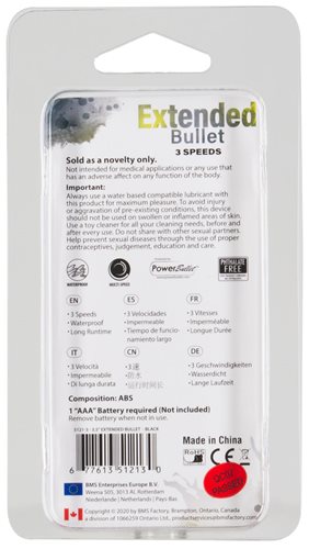 Power Bullet Breeze 3.5 inches Black Vibrator from BMS Enterprises. from BMS Enterprises. Say hello to the Power Bullet Extended Bullet the 3 speed 3.5 inches pleasure product that allows you to put those powerful vibrations right where you want them. Whether it is for clitoral stimulation or a neck massage, Power Bullet Extended has as many uses as you need it to. Covered in a soft coat finish, with three easy presses of the button you can quickly go from mild to wild. The mild vibrations are calm, yet deep and rumbly for beginners, while the wild vibrations are fierce and powerful for more seasoned Sexperts. Power Bullet Extended is small and discreet so you can take it anywhere. It is waterproof for fun in and out of the shower and tub. Note do not remove the paper sleeve inside the battery compartment as it is needed for functionality. Key features 3.5 inches bullet vibrator. 3 speeds. Easy one press button. Soft coat finish. Waterproof vibrations. Body safe. Small and discreet. Made using body safe materials ABS Plastic. Vibrating bullet requires 1 AAA battery, not included. Categories: Vibrators, Bullets, Eggs, Sex Toys for Women, Vibrating Bullets and Eggs. Restricted, Amazon Restricted. 2024.