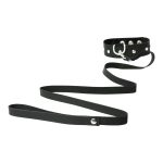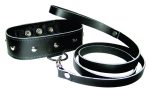 Sportsheets Leather Collar and Leash set for training your sex slave or pet. Soft leather collar adjusts with buckle closure for safe, comfortable fantasy sex play. Genuine, leather, adjustable, metal studded collar with metal D-ring and matching quick clip leash. Take control on your fantasy situations in style. Details: keep them in check with a loop around their neck. This winsome collar girds and garnishes your victim in studded allure with high quality black leather, granting you 42 inches of leeway to guide, grip, and chastise your petulant pup as you see fit. Leather Leash & Collar specifications materials: leather, nickel free metal hardware, brass metal, polyester binding Velboa fabric. Sportsheets keeping couples connected. Limited Lifetime Warranty, Sportsheets will replace any defective product. If the product is not available, Sportsheets will replace it with a similar product of similar function. No video. New images. 2021.