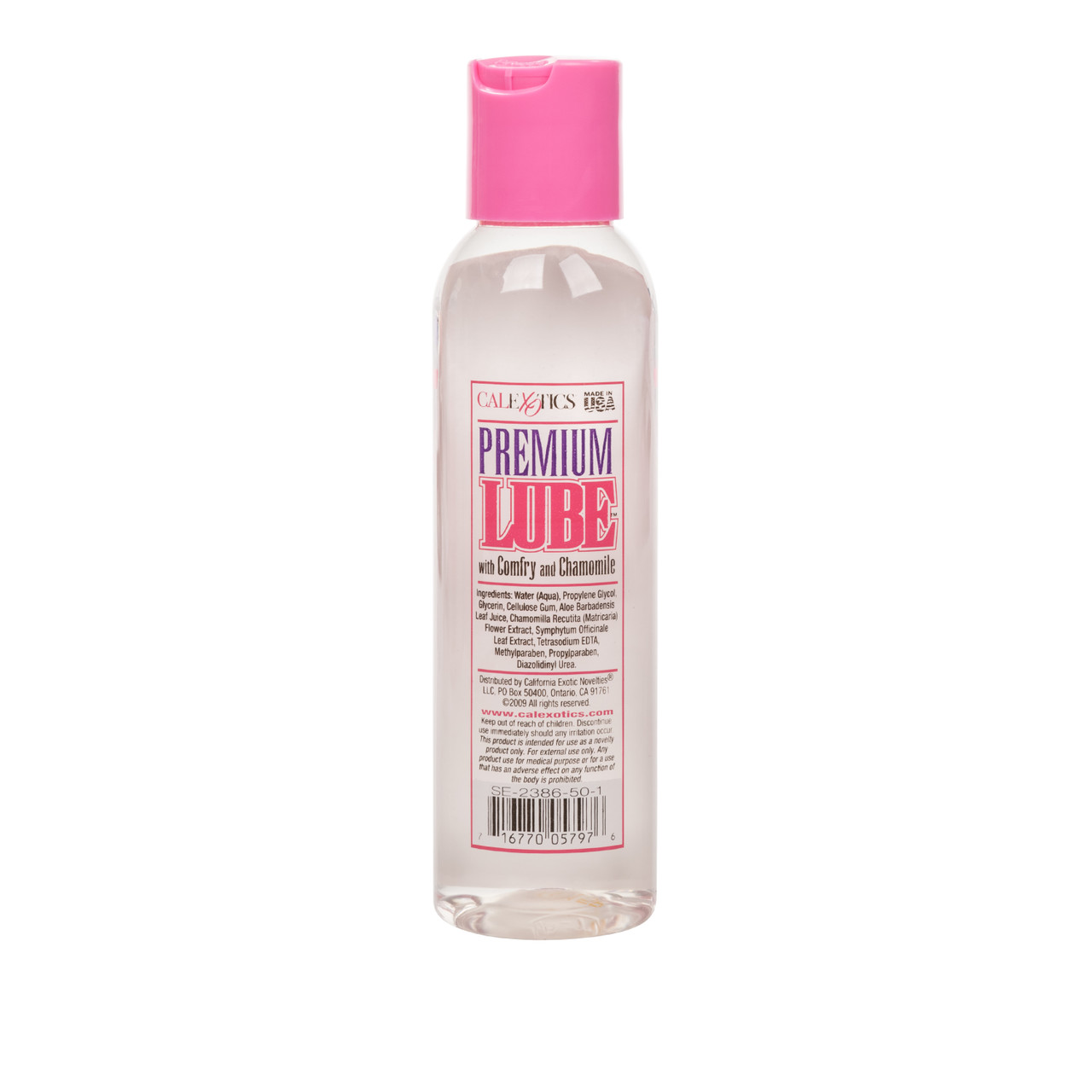 Premium Lube from California Exotic Novelties. Experience ultimate ecstasy with the Premium Lube. The high quality, water based lubricant is smooth and slick for maximum coverage and long lasting results. The easy to use lubricant is suitable for use with all erotic toys and is great for spontaneous amorous action. Glide a little lube onto your sweet spots and erogenous zones, and enjoy prolonged and extended tantalizing pleasure. The lube is unscented and infused with soothing and relaxing Comfry and Chamomile. The sensuous lubrication formula is supplied in a handy 4 fluid ounces size transparent bottle with twist cap and is perfect for intimate contact and suitable for use with all types of adult toys. The smooth and silky lube is easy to apply, and also recommended for toy sharing use. Increase your stimulation ecstasy by ensuring that you lube up your love holes before play. Ideal for the first time and experienced users, the lube is designed for use during every intimate encounter. Apply the correct amount of lube to your preferred pleasure zone and get ready to experience mind blowing arousal and stimulation sensations, as the formula creates the perfect sliding and gliding action. Use the lube for results that blows your mind. After sensual seduction and ultimate climax, the lube washes off easily with mild soapy water. High quality, unscented, water based lubricant. Infused with soothing Comfry and Chamomile. Smooth and slick formula for long lasting results. 4 fluid ounces. Premium Lube is a registered trademark for California Exotic Novelties. Sex toys and sexual wellness. Made in the USA. Categories: Anal Toys, Erotic Body Lotions, Lubricants, Water Based Lubricants, Anal Lubes, Lotions, Sprays, Creams. 2023.