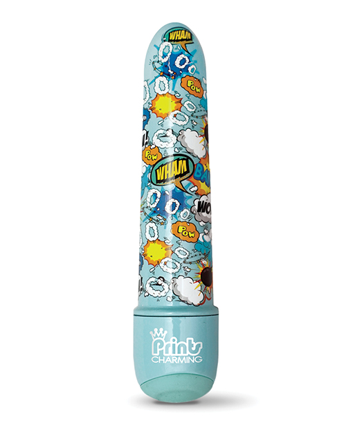 Prints Charming Pop Tease 5 inches Mini Vibe Bang Blue from Global Novelties. Classic smooth vibrator with fun vibrant unique patterns. Ten powerful functions with a silicone inlaid easy push button and illuminated LED control. Waterproof and whisper quiet, body safe and phthalate free. Storage bag included, zero waste packaging. Size in 5 inches by 1 inch. Vibrator requires 2 AA batteries, not included. Made using body safe phthalate free materials ABS Plastic Shaft, Silicone push button. Categories: Vibrators, Classic Vibrators, Novelty Vibrators, Sex Toys for Women. 2023.