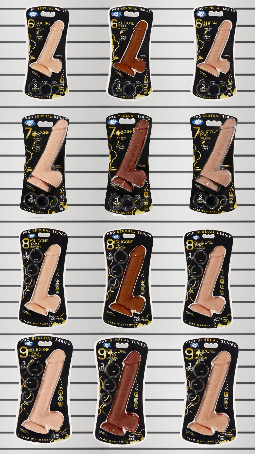 PRO SENSUAL PREMIUM SILICONE DONG PLANOGRAM 12PC 6 7 8 9IN