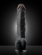 Real Feel Deluxe No. 11 Black 11 inches Realistic Vibrator with Wall Banger Suction Cup Technology. Enjoy the Real Feel of velvet soft, life like skin with this incredibly realistic vibe. Meticulously designed with a pronounced head, bulging veins, and free hanging balls, the super lifelike shapes, textures, and colors of this vibe truly look and feel like the real thing! Made with phthalate free Fanta Flesh, this squishy material mimics the softness of real skin and is completely body safe. The ultra strong suction cup base sticks to nearly any smooth, flat surface for a wall banging good time! Stick it to the floor, wall, tile or bedpost the super-strong suction cup will stay securely in place during every passionate thrust, and features a quick release tab for easy removal. The sturdy suction cup doubles as a harness compatible base that remains snug in its place even when the action heats up. Wear this vibrating dildo with any Fetish Fantasy Series harness for the most comfortable and realistic strap on experience! Insert the required batteries, screw the base completely on until it is tight, and the vibe will immediately turn on to offer powerful vibrations for the most intense orgasm you have ever imagined! To power down, simply unscrew the cap and the vibe will turn off. Take this completely waterproof vibe in the shower, hot tub, or spa and turn bath time into pleasure time! Use plenty of Moist Personal Lubricant for an extra wet and wild experience. Cleanup is a snap after the fun with Pipedream Toy Cleaner and warm water. Insertable length 9.5 inches, diameter 2.5 inches, length 11.25 inches, width 2.5 inches, height 2.5 inches, girth 7.5 inches, diameter 2.5 inches. Weight 2 pounds. Features and Functions: Realistic Fanta Flesh, Phthalates Free, Suction Cup, Waterproof, Harness Compatible, Vibrates. Battery Information: requires 2 AA batteries, not included. Materials:Thermoplastic Rubber TPR, ABS Plastic, PVC. Country of origin: China. Pipedream Products Catalog Real Feel Deluxe. Categories: Vibrators, Dildos, Dongs, Realistic Large Dildos, Dildos and Dongs Realistic. New package image. Restricted, Amazon Restricted. 2022.