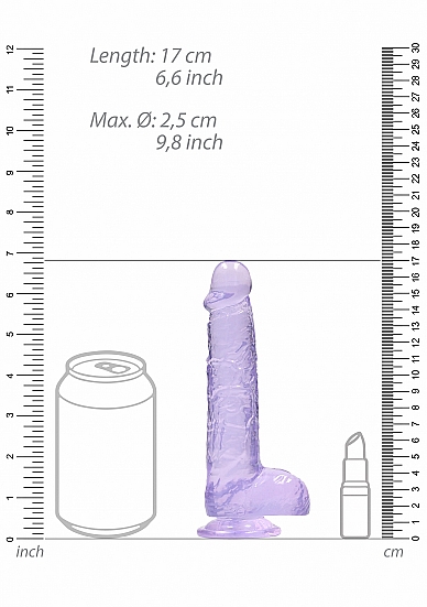 Realrock 6 inches Realistic Dildo with Balls Purple from Shots Toys. This Realrock Crystal Clear model has been designed with realistic balls for an enhanced life like experience. All come with a sturdy suction cup so you can stick it to practically any smooth surface. All Realrock Crystal Clear are phthalate free, latex free, body safe and non-porous which makes them easy to clean and gives them a longer lasting durability. This model with balls stands.6.7 inches tall including the suction cup, has an insertable length of 4.7 inches and has a girth of 1.2 inches. Dimensions package 9.84 inches by 5.87 inches by 1.85 inches. Weight package 6.17 ounces. Product dimensions 6.7 inches by 1.2 inches. Insertable length 4.7 inches. Waterproof non-vibrating. Phthalate free materials Thermoplastic Elastomers TPE. Shots Toys – Realrock. Categories: Dildos, Dongs, Realistic Small and Medium Dildos, Dildos and Dongs Realistic. 2022.