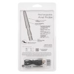 Rechargeable Anal Probe Silver 5.5 inches Anal Probe from California Exotic Novelties. Experience the ultimate pleasure with our sleek and slender, ultra powerful Rechargeable Anal Probe. Its tapered design allows for easy insertion and targeted stimulation, while the 10 intense functions of vibration, pulsation, and escalation offer a variety of sensations to explore. The Anal Probe features an easy grip handle, providing you with full control and ensuring a comfortable grip during use. Crafted from body safe, unscented, and phthalate free materials, it prioritizes your satisfaction. It is also waterproof and submersible up to IPX7 waterproof rated standards, allowing for indulgent play in and out of the water. Thanks to the state of the art memory chip, the probe remembers your last function used, so you can effortlessly resume where you left off. The security travel lock feature adds convenience and peace of mind, preventing any unintended activation while you are on the go. With USB rechargeability, you can easily power up your probe with the included pinpoint connection charging cord. A complete charge takes just 2 hours, and you will have up to 60 minutes of exhilarating high speed vibrations or 120 minutes of low speed stimulation to enjoy. Explore new levels of pleasure and satisfaction with the Rechargeable Anal Probe and get ready for a journey of intense sensations and unforgettable experiences. Specifications: SKU SE-0524-20-2. Color: Silver. 1 year warranty. Features: Phthalate free materials, Rechargeable cord with a pinpoint connection end, Vibrates. Waterproof Anal Probe rated IPX7. Power source: USB Rechargeable cord included. Material type: ABS Plastic with Metallic Plating Probe. Silicone button. Measurements: 5.5 inches by 1 inch. Bulk weight 1.6 ounces. Package with Anal Probe 4.6 ounces. Package: 1 inch by 5.75 inches by 10 inches. Maximum run time 120 minutes. Maximum charging time: 120 minutes. Functions: 10. Categories: Anal Toys, Probes, Sticks and Rods, Vibrators, Eco-Friendly Sex Toys, Rechargeable Vibrators, G-Spot, P-Spot Vibrators. 2024.
