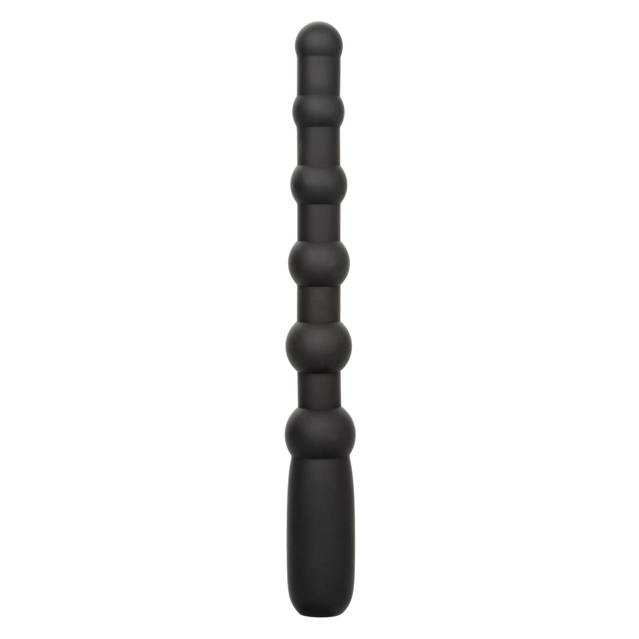 Anal Toys Rechargeable X-10 Beads from California Exotic Novelties. Indulge in the pleasure of the soft and smooth Rechargeable X-10 Beads. Its graduated beaded design offers a delightful sensation with every insertion. Experience 10 intense functions of vibration, pulsation, and escalation that will take your pleasure to new heights. This Anal Probe is designed to flex and bend, allowing for multi-directional positioning. Its waterproof and submersible IPX7 rating means you can enjoy sensual adventures in the shower or bath without worry. Equipped with a state of the art memory chip, the X-10 Beads remembers your last used function, so you can easily pick up where you left off. The security travel lock feature ensures your privacy by preventing accidental activation while on the move. Recharging is a breeze with the included USB charging cord. A complete charge takes just 1 hour, and you will have up to 50 minutes of invigorating high speed stimulation or 65 minutes of low speed vibrations to enjoy your exploration. Indulge in the pleasure of the soft and smooth Rechargeable X-10 Anal Beads. With its flexible design, intense functions, and convenient features, it is your gateway to a world of exquisite pleasure and satisfaction. Specifications: SKU SE-1233-10-2. Color Black. 1 year warranty. Features:Phthalate free, Rechargeable Anal Toy, Vibrates, Heats Up, Adjustable. Waterproof rated IPX7. Waterproof rating IPX7. Submersion for about 30 minutes at a depth of a little over a yard. Power source:USB Rechargeable, pinpoint attachment, included. Material type: Silicone. Measurements: 7 inches by 1.25 inches. Bulk weight 4 ounces. Package with Beads inside 8 ounces. Package size 1 inch by 5.75 inches by 12.5 inches. Maximum run time 65 minutes.Maximum charging time60 minutes. Functions 10. Please note it is recommended to fully charge Vibrator once every 6 months. Categories: Anal Toys, Vibrators, Rechargeable Vibrators, Anal Beads, Flexible Vibrators. 2023.
