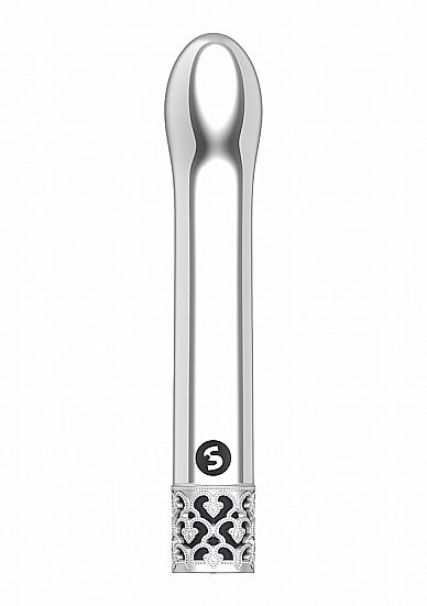 Royal Gems Jewel G-Spot Silver ABS Plastic G-Spot Vibrator Rechargeable from Shots Toys. You deserve a Royal Climax. You do not need to be royalty to enjoy this elegant line. The sleek metal finish makes this vibrator the crown jewel of any collection. The curved tip on the Jewel Vibrator is perfect for internal or external pleasures. The magnetic fully rechargeable proprietary New Generation F-1 motor design delivers mind blowing vibrations uniformly across the full surface of the toy. Do not settle for the common, choose to be royal. Dimensions package 3.94 inches by 1.34 inches by 6.5 inches. Weight package 5.89 ounces. Product dimensions 4.72 inches by 0.98 inch. Product weight 1.16 ounces. Product diameter 0.71 inch. Quantity motors 1. Rotations vibration tip 10,000 Revolutions per minute RPM. Speed modes 10. Multi speed vibrations. Noise level <45 decibels dB. Rechargeable vibrations. Recharging time 120 minutes. Recharged battery life time 60 minutes. Waterproof vibrations. Splash proof for play in the shower. Phthalate free, body safe materials ABS Plastic. Shots Toys - Royal Gems Vibrator. Categories: Rechargeable Vibrators, G-Spot Stimulators, Sex Toys for Women, Vibrating G-Spot. 2023.