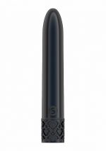 Royal Gems Shiny Powerful Vibe Rechargeable Gunmetal ABS Plastic Bullet Vibrator Rechargeable from Shots Toys. You deserve a Royal Climax. You do not need to be royalty to enjoy this elegant line. The sleek metal finish makes this vibrator the crown jewel of any collection. Shiny is slim and long, great for internal or external stimulation. The magnetic fully rechargeable proprietary New Generation F-1 motor design delivers mind blowing vibrations uniformly across the full surface of the toy. Do not settle for the common, choose to be royal. Dimensions package 6.5 inches by 3.94 inches by 1.34 inches. Weight package 0.4 ounce. Product dimensions 4.25 inches. Product diameter 0.71 inch. Quantity motors 1. Rotations vibration tip 10,000 Revelations per minute RPM. Speed modes 10. Multi speed vibrations. Noise level <45 decibel dB. Rechargeable vibrations. Rechargeable time 120 minutes. Recharged battery life time 60 minutes. Waterproof vibrations. Splash proof for play in the shower. Phthalate free, body safe materials ABS Plastic. Shots Toys - Royal Gems Vibrator. Categories: Classic Vibrators, Rechargeable Vibrators, Sex Toys for Women, Vibrating Bullets and Eggs. 2023.