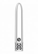 Royal Gems Shiny Powerful Vibrator from Shots Toys. ABS Plastic Bullet Vibrator is rechargeable. No more searching, buying or throwing away batteries. You do not need to be royalty to enjoy this elegant line. The sleek metal finish makes this vibrator the crown jewel of any collection. Shiny Vibrator is slim and long, great for internal or external stimulation. The magnetic fully rechargeable proprietary New Generation F-1 motor design delivers mind blowing vibrations uniformly across the full surface of the toy. Do not settle for the common, choose to be royal. You deserve a Royal Climax. Dimensions package 6.5 inches by 3.94 inches by 1.34 inches. Weight package 0.4 ounce. Product dimensions 4.25 inches. Product diameter 0.71 inch. Quantity motors 1. Rotations vibration tip 10,000 Revolutions per minute RPM. Speed modes 10. Multi speed vibrations. Noise level <45 decibel dB. Rechargeable vibrations. Rechargeable time 120 minutes. Recharged battery life time 60 minutes. Waterproof vibrations. Splash proof for play in the shower. Phthalate free, body safe materials ABS Plastic. Shots Toys - Royal Gems. Categories: Classic Vibrators, Rechargeable Vibrators, Sex Toys for Women, Vibrating Bullets and Eggs. 2023.