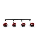 Saffron Spreader Bar and Cuff Set from Sportsheets. Act out your naughtiest power play fantasies with the Saffron Spreader Bar and Cuff Set. Four faux leather, lightly padded adjustable cuffs in the signature red and black of the Saffron collection buckle comfortably around your wrists and ankles and clip to the spreader bar and each other in any way you can dream up. The strong, solid spreader bar’s rings are firmly welded in place, so there’s no escape, only release. Imagine your ankles cuffed to the farthest ends of the spreader bar, leaving your most luscious bits on display and accessible for your lover’s wicked pleasure, or your arms spread and immobilized while they tease and torment every inch of you. The spreader bar’s four attachment points and the swivel snap clips on each cuff even make hog tying or multiple partner play possible. Mix and match with other Saffron collection products for even more forbidden fun! About the Saffron collection: Saffron is a thoughtfully crafted line of couples friendly vegan products designed for players at every level of interest and experience. Created with beauty, comfort, and safety in mind, Saffron is perfect for anyone who desires to explore a new kind of give and take in the bedroom. Adjustable Cuffs fit most users. Swivel snap clips make any position possible. Vegan/Vegetarian Friendly Faux Leather. Nickel Free Metal. Materials: Stainless Steel, Polyurethane PU, Aluminum. Includes: One Spreader Bar with O-Rings in Matte Black 24.75 inches. Four adjustable Faux Leather Cuffs in Saffron and Black 10 inches. Sportsheets will replace any defective product. If the product is not available, Sportsheets will replace it with a similar product of similar function. Limited Lifetime Warranty, Sportsheets will replace any defective product. If the product is not available, Sportsheets will replace it with a similar product of similar function. Video. 2021.