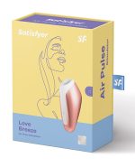 Satisfyer Love Breeze Copper Clitoral Stimulator Wonderful pressure waves stimulate the clitoris with 11 intensities without contact. The Love Breeze will also inspire you with its soft silicone head, rechargeable battery, and ergonomic, waterproof finish. Stimulates the clitoris. Wonderful pressure waves stimulate the clitoris with 11 intensities without contact. The Love Breeze will also inspire you with its soft silicone head, rechargeable battery, and ergonomic, waterproof finish. Stimulates the clitoris using intense pressure waves without direct contact. Made from super soft, body friendly, medical grade silicone that is smooth to the touch and extremely hygienic. Thanks to its waterproof IPX7 finish, this toy can be used safely in water and is easy to clean. 15 years guarantee. The handy shape of the Satisfyer Love Breeze makes it the ideal air pulse vibrator for on the go: with a sensual combination of air pulses and tingling negative pressure, this vibrator stimulates the clitoris without contact with 11 intensity levels, which can be controlled easily via the intuitive control panel. The compact shape means you can stow it away easily in your handbag and, thanks to its rechargeable batteries, it is always ready when you need some sensual clitoral stimulation. The Love Breezes application head is made of body-friendly, hygienic silicone and fits snugly around the clitoris. The material is especially supple and will seduce you with its delicate feel. Thanks to its waterproof IPX7 finish, you can also use your Satisfyer Love Breeze in the shower or bathtub and clean it easily with warm water and mild soap. If your Love Breeze ever runs out of steam, you can recharge the integrated batteries with the included USB charging cable.