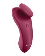 Satisfyer Sexy Secret Panty Vibrator Wine Red a clitoris stimulator for on the go. The Sexy Secret from Satisfyer provides sensual stimulation on the go, just attach the panty vibrator to your panties with the handy magnet so you can stimulate yourself with powerful, whisper quiet, vibrations and spice up your everyday life. The ergonomic shape means it fits perfectly to your body contours, lying directly on the clitoris and providing you especially intense stimulation. The surface, made of body friendly silicone, is especially soft, providing you with smooth fun with just a few drops of lubricant. Panty vibrator with Satisfyer Connect. This portable clitoris vibrator can also be controlled easily on the go: you can operate it intuitively with the Satisfyer Connect app. Control the vibrations of this panty vibrator using your cell phone or your Apple Watch, or let someone else control it for you from anywhere in the world! Let your creativity run free with the new Satisfyer Connect app! Can also be used without the app. You can also create your own vibration programs and share them with other app users, and create vibration patterns based on your Spotify or music library playlists. Because this panty vibrator is waterproof, IPX7 rating, you can also use it in wet areas, like the shower or bathtub and clean it easily with warm water and mild soap. If your Sexy Secret Panty Vibrator ever runs out of steam, you can recharge the integrated batteries with the included USB charging cable. 15 year guarantee. CES Innovation Awards 2021 Honoree. Please note no panty included.