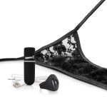 My Secret Screaming O Charged Remote Control Panty Vibe rechargeable remote control vibrating panty set. Deep, rumbling Vooom vibration. Silicone remote looks like a finger ring. Side tie lace panty fits up to 60 inches waists. Made of lab tested, body safe ABS plastic and silicone. Enjoy a sexy night or play in public with My Secret Charged Remote Control Panty Vibe, a waterproof 10 function rechargeable Vooom bullet that fits discreetly into a side tie lace panty. Operated by a remote control cleverly disguised as a finger ring, My Secret Charged Panty features a secret pocket that keeps deep, rumbling vibration right where you want it and fits up to 60 inches waists for a comfortable feel. The discreet push button remote ring works up to 50 feet away and is made of soft and stretchy True Silicone for easy wear on almost any size finger. Experience deep rumbling vibration that lasts for more than 60 minutes on a single charge with a body safe ABS plastic bullet that works with or without the ring and is supported by a 2 year limited warranty. Whether for a tickling tease or some sex life spice, My Secret Charged Panty inspires connection with a splash of mischief and takes lace lingerie to a new level. Color Black. dnf. 2021