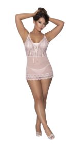 SEABREEZE LACE UP CHEMISE & G SET BLUSH L/XL