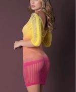 Add a bold touch to your wholesale seamless lingerie lineup with the Seamless Half Sleeve Dress from Exposed Lingerie by Magic Silk. Designed with a flattering underboob accent, geometric patterns, and half sleeves, this ultra-stretchy piece conforms to any body type. Available in black light reactive neon lime, sunset ombre (yellow to peachy pink), and vibrant turquoise, its a must-have for playful customers.