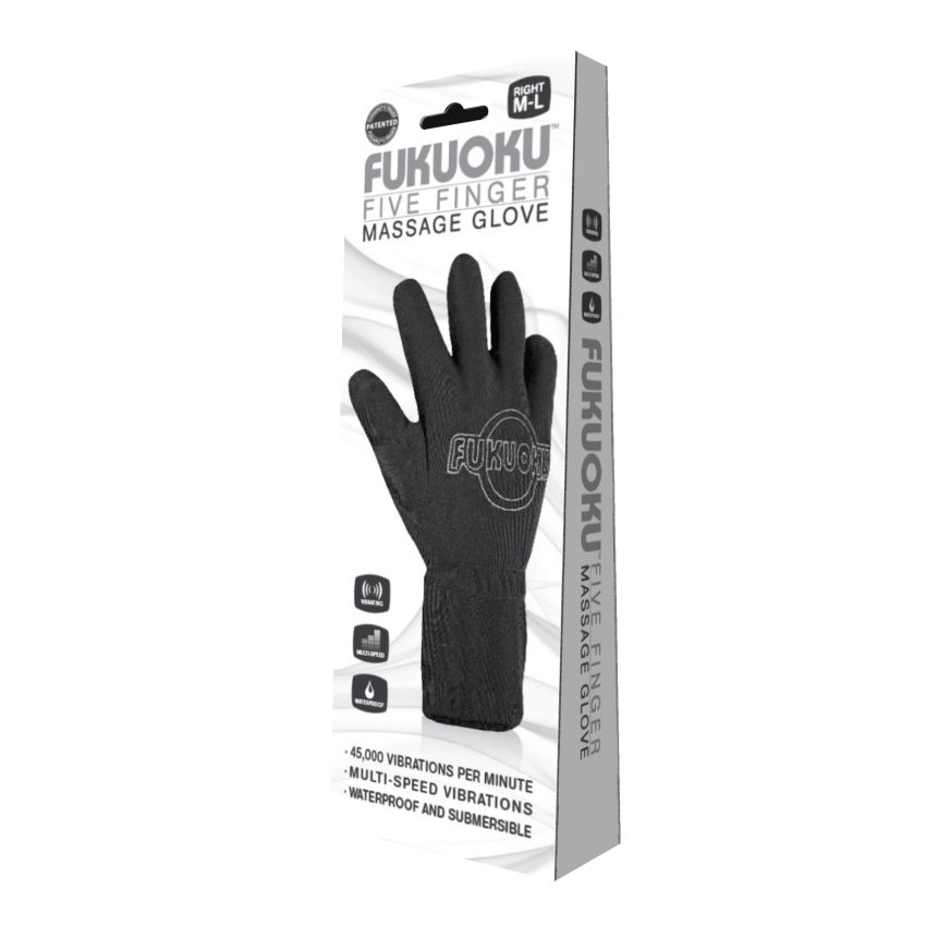 For couples Fukuoku will enhance your energetic and healthy sex life. Its vibrating glove design brings massage therapy to extreme new heights, like thousands of tiny fingers stimulating and manipulating all of your most sensitive areas. The importance and benefits of massage therapy for our well-being have been known since ancient times. Fuzuoku enhances the work of the masseur with Its powerful touch activated fingertip massager and helps relax muscles and provide a more effective massage. Five Finger Glove for right handed users in a black color fits medium to large hands. The world’s first waterproof multiple speed massage glove. The Fukuoku Five Finger Massage Glove houses vibrators at the tip of each finger creating approximately 45,000 vibrations per minute at full speed. Vibrating Massage Glove is a patented Five Finger multiple speed vibrating massage glove heightens a sensual massage. The Five Finger massage glove is made of Lycra which gives a satin feel. Each finger generates 9,000 therapeutic vibrations per minute. The Fukuoku Five Finger Massage Glove is the ultimate in total body massage. Conducive to all oils, creams and gels. It is even waterproof and submersible so you can share relaxing moments with your partner in the shower, bathtub, Jacuzzi, sauna. The waterproof battery compartment is in a pouch at the base of the glove. Features: 45,000 vibrations per minute. Stretchable material to fit all sizes. Waterproof and submersible. Multiple speed vibrations. Batteries required 3 AAA batteries, included. The Fukuoku Five Finger Massage Glove from DeeVa Toys. DeeVa is a registered trademark owned or used under license by DeeVa, Granby, Quebec Canada. New high resolution package image added July 3, 2013.
