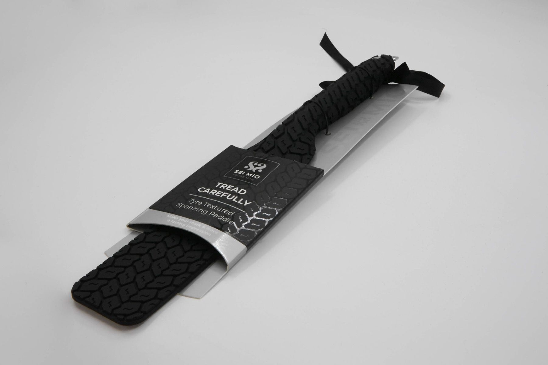 You are mine! Sei Mio Tyre Spanking Paddle Large Black from Creative Conceptions. Perfect for experimentation or seasoned spanking enthusiasts, this vegan, waterproof paddle is double sided, so you can choose the sensation – sleek and smooth or rugged tyre textured. Tread carefully. Whether you leave an impression or not is down to you. Features: stylish, sophisticated, made to last. Provocative, portable, flexible, waterproof. Tyre textured: added grip, unique markings and a satisfying slapping sound. Discreet: slips into an overnight bag or drawer. Categories: Bondage, Fetish, Kink, Sex Toys for Couples, Whips, Paddles and Ticklers. 2023