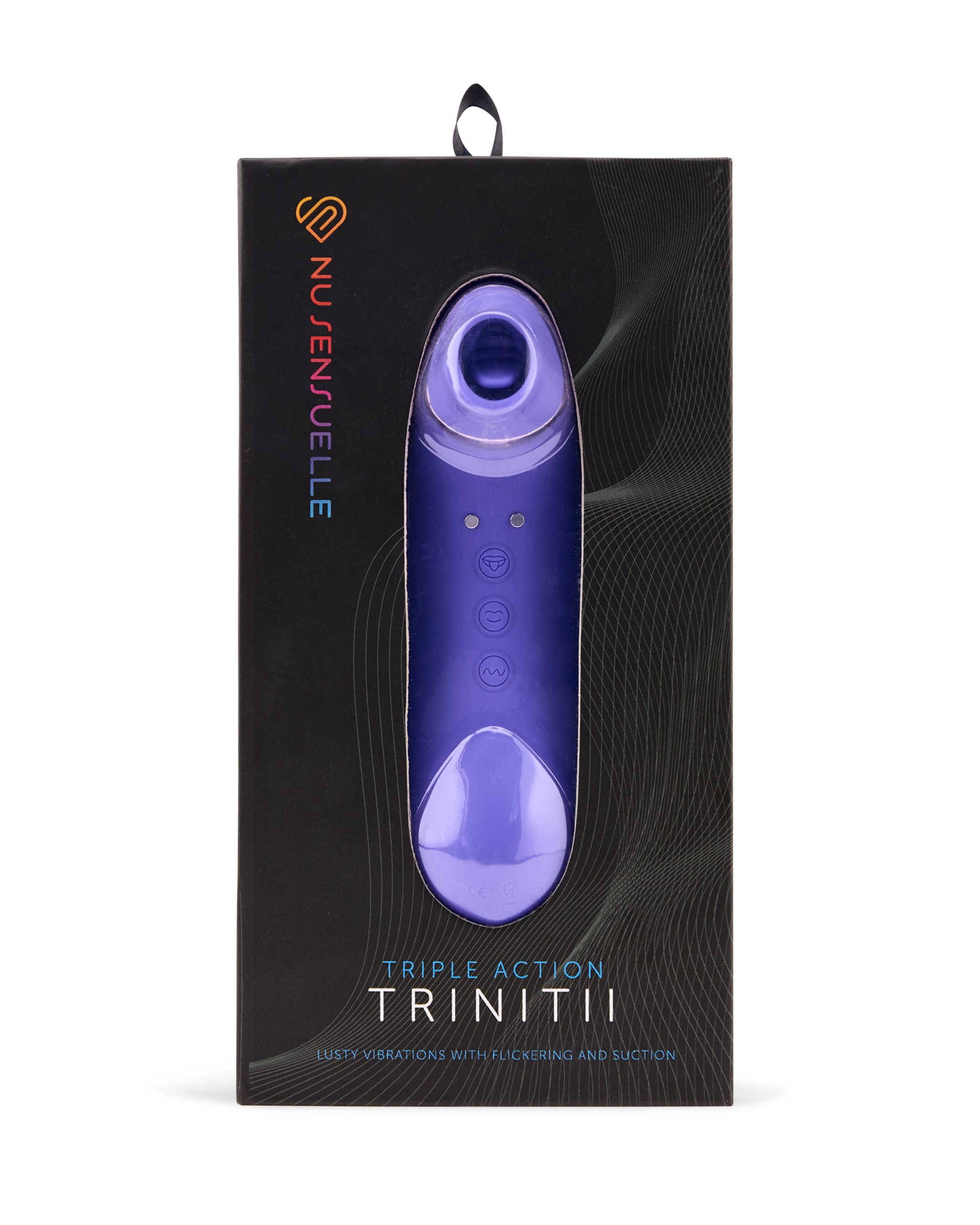 Sensuelle Trinitii Ultra Violet Clitoral Vibrator 15 functions and modes. 3 toys in 1. Nu Sensuelle knows clitoral stimulation is the key to climax for of us. But we all experience pleasure differently. Some enjoy intense stimulation, some prefer gentle. So, finding a toy that works for you can be challenging. That is why we created Trinitii. Living up to its name, Trinitii combines three separate sensations to deliver incredibly unique and powerful clitoral stimulation. One look at Trinitii lets you know it is not your typical toy. Start by placing Trinittis soft, open tip over the clitoris to experience gentle suction. This indirect stimulation is perfect for those who do not always want direct contact. Next up is Trinitiis flickering tongue that mimics the sensation of oral sex. And last, but not least, Trinittii also vibrates to add one final thrill you will feel wherever it touches your skin. The result is layered stimulation like you have never experienced. And, of course, you can control all three forms of stimulation independently. Trinittii offers 15 vibration patterns, 7 suction intensities, and 4 speeds of flickering tongue movement, allowing you to customize your pleasure every time. Features: three way, layered stimulation. Suction, flickering tongue and vibration. 15 vibration patterns. 7 suction intensities. 4 flickering tongue speeds. 100% body safe materials. USB Rechargeable Vibrations. Product specifications: materials made using body safe Silicone, ABS Products accents. Size: 2.09 inches by 6.26 inches. Bulk weight .410 of a pound. Speeds + Suction Intensities + Tongue Speeds: 15 speeds + 7 suction intensities + 4 flickering tongue speeds. Charge type: Magnetic USB charging port. Charging time: fully charged within approximately 3 hours to 4 hours. User time: 30 minutes to 40 minutes. Interface: 3 buttons of operation. 2 years warranty. Please note package is changing color from white to black soon. Categories: Vibrators, Clitoral, Rechargeable Vibrators, Sex Toys for Women, Tongue Vibrators. 2023.
