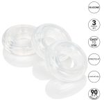 Set Of 3 Silicone Stacker Rings from California Exotic Novelties. The Set of 3 Silicone Stacker Rings will transform uncomfortable penetration into a truly plush and comfortable experience. The flexible cock rings can be stacked or used independently to help control and customize depth of penetration. These customization Silicone Ring stack fit snuggly on you to provide a soft, pillowy cushion for your partner. The stretchy Rings give you total control of penetration depth for ultimate in comfortable penetration. Three soft, stretchy Silicone Rings let you to easily control and customize the depth of penetration. The ultra stretchy sleeve is made from a phthalate free, body safe Silicone to ensure peace of mind through every passionate moment. This durable rings are easy to use, easy to clean and requires no special care. Prior to and after each use, wash Rings internally and externally with warm water and soap, then disinfect with the Universal Toy Cleaner. Rinse with warm water. Pat dry before storing. Specifications: Color Clear. Materials Silicone. Features Phthalate free. Measurements 0.75 inch Rings diameter. Weight bulk 1.6 ounces. Package 3.2 ounces. Package: 1 inch by 5.5 inches by 8.25 inches. Categories: Bondage, Fetish, Kink, Love Rings, Cock Rings, Sensual Kits, Men’s Cock and Ball Gear, Cock Ring Trios. 2023.