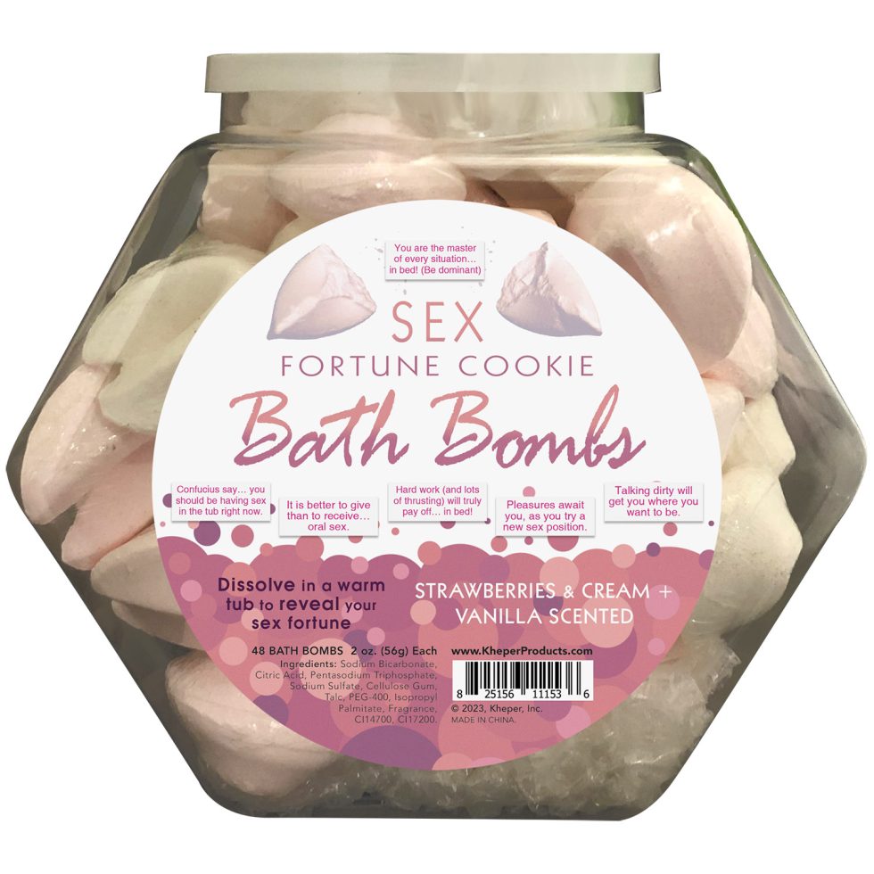 Sex Fortune Cookie Bath Bomb Fishbowl from Kheper Games. Sex Fortune Cookie Bath Bomb Fishbowl contains 48 individually wrapped units. Now also available in a 48 unit Fishbowl. Instead of buying a full Chinese Take Out Box of 6 bath bombs, now your customers can by singles, more economically priced to support at approximately $2.99 per bath bomb MSRP. Disolves in a warm tub to revel a sex fortune. Ingredients: Sodium Bicarbonate, Citric Acid, Pentasodium Sulfate, Cellulose Gum, Talc, PEG-480, Isopropyl Palmitate, Fragrance, CL14700, CL 17200. Scents: Strawberries, Cream, Vanilla. Made in China. Categories: Party Games, Gifts, Supplies, Sex Toys for Couples, Health and Beauty Aids, Bath Time, Adult Gags, Gifts and Novelties. 2024.