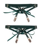 Add a hint of bondage to your lingerie. The Indica Laced Up Garters wrap your thighs in emerald faux leather and tie closed with silky green satin laces for a corset-inspired fit. Adjustable from 18″ to 26″, these garters hug the body just rightenhancing curves, stocking security, and seductive confidence. Whether worn under clothing or as part of a scene, theyre guaranteed to turn heads.Features:Corset-style lacing for a sexy, customizable fitFits thighs 18″26″ (45cm66cm)Built-in clip holds stockings securely in place