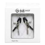From Sportsheets Sex and Mischief line Nipple Clamps feature 2 fully adjustable multi-use basic clamps for him or her. Soft pads for added comfort and can be removed. Tension adjustments make them perfect for nipple stimulation as well as many other sensitive areas. Details: a versatile classic for nipple play. Elevate your erotic ecstasy with painful pleasure! Rubber tipped for comfort, these nipple clamps are a great introductory accessory for those who lean towards masochist or submissive roles, though anyone can enjoy the teasing torment of nipple toys. Thumb screws allow you to adjust the pressure on each sensitive bud as you inch closer and closer to orgasmic bliss! Nipple Clamps specifications materials: nickel free metal, PVC, ABS plastic. Adjustable nipple clamps via thumb screws. Limited Lifetime Warranty, Sportsheets will replace any defective product. If the product is not available, Sportsheets will replace it with a similar product of similar function. No video. 2021.