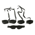 Sex and Mischief Our First Bondage Kit Fantasy role play! Our First Bondage Kit is the ideal way to start out with bondage. This wonderful kit includes a blindfold, four wrist and ankle cuffs with extensions for complete bondage play. All bondage has its beginning! Sex and Mischief Our First Bondage Kit from Sportsheets. A quick and easy dive into a daring new dimension..A perfect introduction for couples looking to explore the exciting world of bondage and restraint play, this kit comes with four comfortable, safe, and easy to use ankle/wrist cuffs that firmly anchor to your favorite chair, bench, or bed. Smooth the Hook & Loop restraints around your partners’ limbs, slip on the soft as satin blindfold and let the sin sational fun begin. This kit offers great versatility to give couples all they need to customize their fantasies and experiment with a new world of devious pleasure. Keeping couples connected. Sportsheets redefining S&M. Limited Lifetime Warranty, Sportsheets will replace any defective product. If the product is not available, Sportsheets will replace it with a similar product of similar function. Video. 2021.