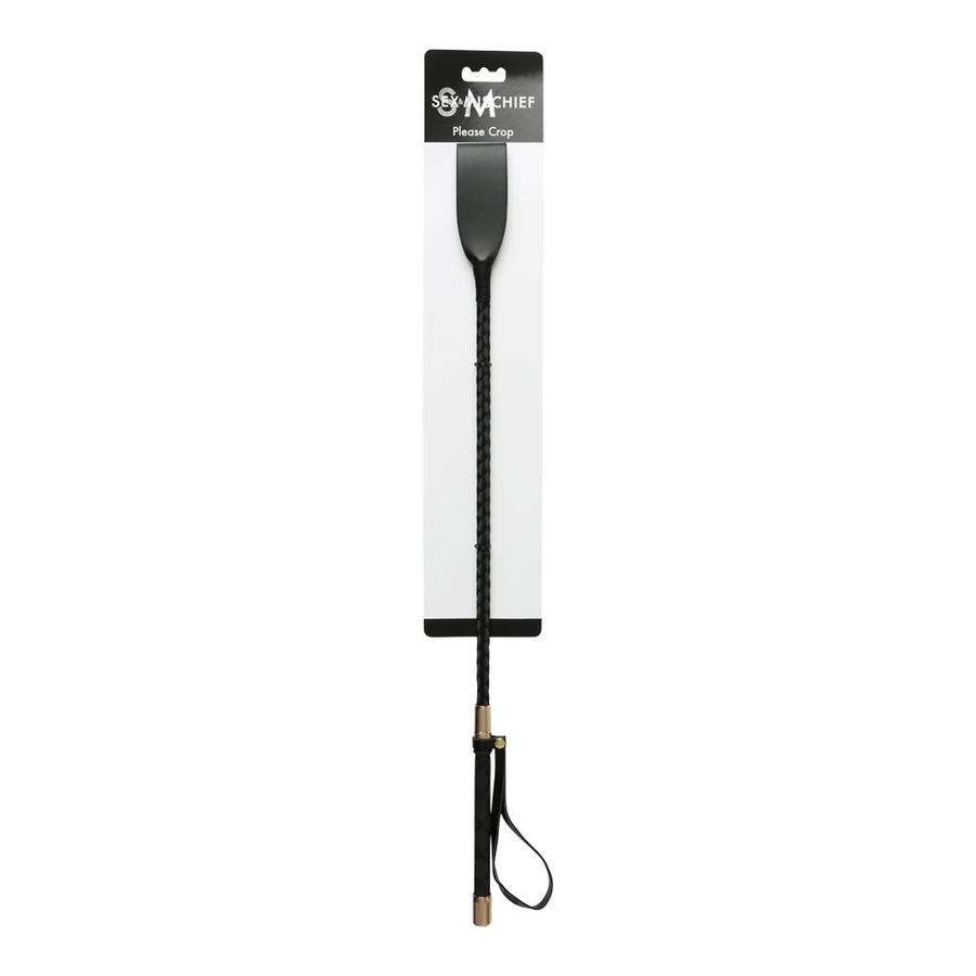 Sportsheets Sex and Mischief line Please Crop. Tease me with silver, Please me with gold. Beauty and bite. Perfect for your fantasy. You are not the only beauty that will shine. Its bite is created by the looped head. Reach for a sophisticated tool that has both beauty and bite.A vegan leather looped head creates a pleasing crack with every smack. The tightly webbed, hand wrapped shaft is springy and strong and leads the eye to the sturdy and elegant handle. A wrist loop makes it easy to stow at a moments notice, in case the action intensifies. The rose gold caps that adorn the handle add another luxurious dimension to this solid, sleek, and striking implement of impact. Product specifications: hand wrapped. Tight webbing on the shaft. Ribbon braided shaft. Faux braided handle. Its bite is created by the vegan leather looped head. Adorned with rose gold caps and black wrist loop. Easy to clean. 23.5 inches total crop length. Limited Lifetime Warranty, Sportsheets will replace any defective product. If the product is not available, Sportsheets will replace it with a similar product of similar function. Categories: Bondage, Fetish, Kink, Valentine’s Day Gifts, Whips, Paddles and Ticklers, Holiday Items. 2024.