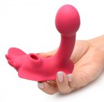 Shegasm Butterfly Tease 10X Clit Suction Stimulator with Remote Control from XR Brands. This vibrating and sucking clitoral stimulation toy will leave you with butterflies! Feel your heart flutter in excitement as you enjoy 10 sucking modes from the air stimulation technology gently teasing your clitoris. Insert the flexible shaft and feel the round tip press against your G-Spot. Choose between 3 speeds and 7 patterns of vibration that buzzes through the shaft to your G-Spot and clitoris for dual stimulation! Lubricate the toy with a Water Based Lubricant and enjoy slowly inserting as you play with different vibration patterns. The vibration can be felt throughout the shaft, the clitoris sucking end and the fluttering butterfly wings that tease and tantalize your labia. The premium Silicone is body safe and IPX6 waterproofed so you can use it in the shower for or play with getting wet and slippery! Grind against the toy and feel the flexible shaft give way for your movement until you come to full satisfaction! After use, clean with warm water, soap and toy cleaner. Wipe clean with a soft cloth or let air dry. Store in a cool, dry place away from other Silicone toys. Measurements: overall length 4.6 inches, insertion length 3.6 inches, widest insertion diameter 1.3 inches. Suction hole diameter: 0.5 inch. Materials: Silicone, ABS Plastic. Color: Pink. Key features: Dual Stimulation. Enjoy simultaneous clitoral and G-Spot targeting stimulation! Suction and vibration: the clitoral suction hole offers 10 sucking modes while the shaft and body buzzes with 3 speeds and 7 different vibration settings! Flexible Silicone Shaft. Recharge using the USB cable provided. Note: remote control distance up to 26 feet, requires 1 CR2032 battery, included. Categories: Vibrators, Clitoral, Rechargeable Vibrators, Sex Toys for Women, Clit Cuddlers. 2023.