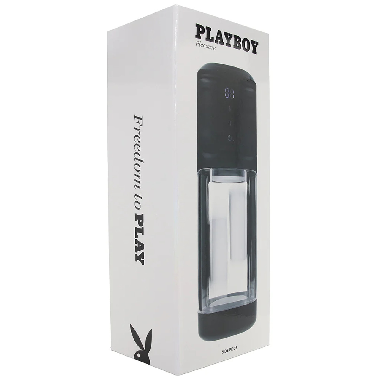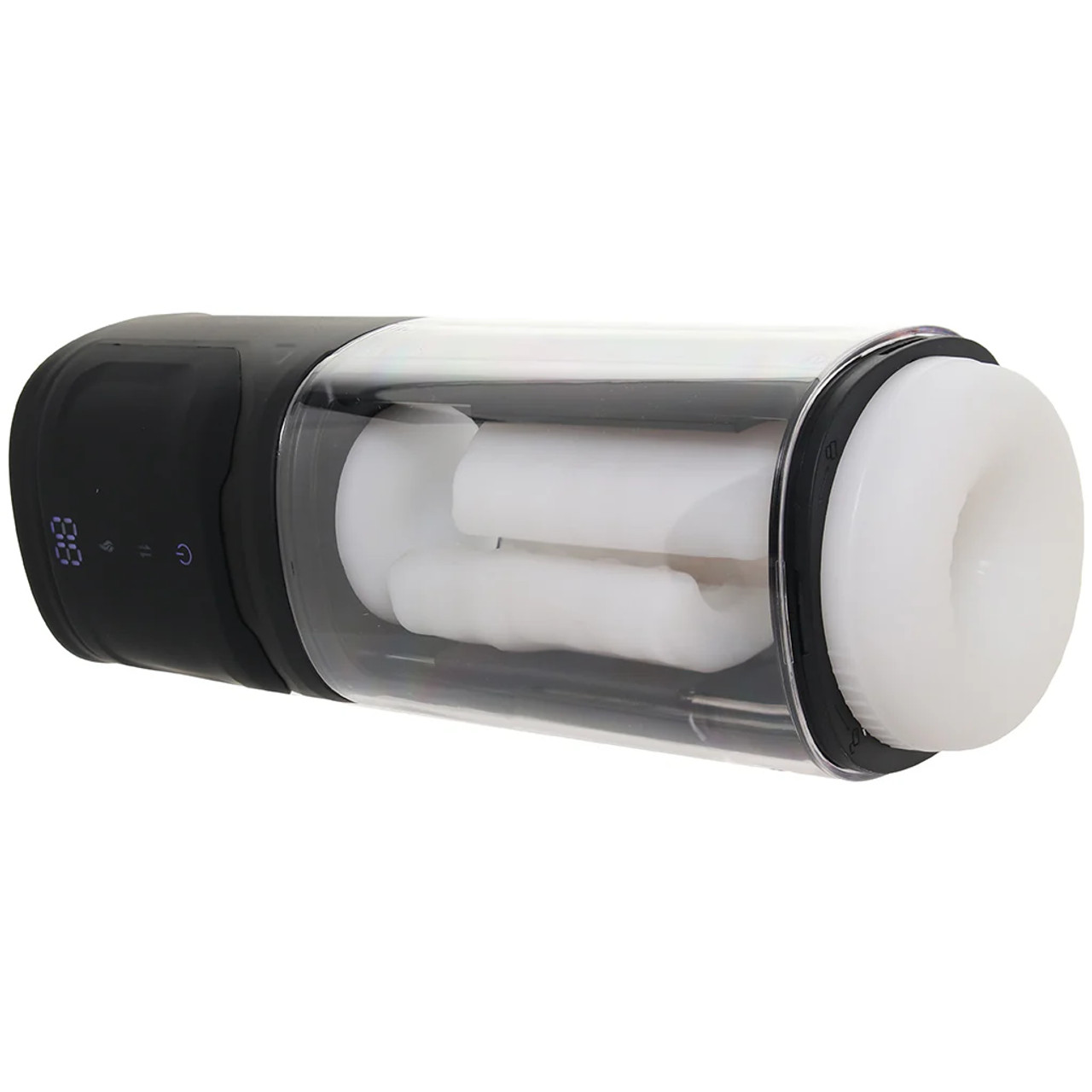 Have you ever fantasized about having a Side Piece? Nows your chance to fulfill the fantasy with this unique sliding stroker that features two soft and squishy pads that slide back and forth for a deliciously realistic sensation. But thats not all your Side Piece also heats up to two different levels depending on your warmth comfort zone and vibrates in 9 different speeds and rhythms for the ultimate pleasure buzz. Use plenty of your favorite lubricant to slip past the textured entry into the warm (or hot) squishy, textured channel and feel the side-by-side motion all around you as the clear canister and a soft padded stopper at the end lets you know when youve thrust to the end. Then allow the multi-speed rhythmic vibrations to put you over the edge! A digital display shows which functions are in use.