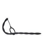 Ouch Silicone Plug and Cock Ring Set Urethral Sounding Black from Shots Toys. Ouch! Introduces a new line of toys for urethral explorers! If urethral sounding is your kink, then let these smooth probes deliver the ultimate pleasure! The urethra is lined with super-sensitive nerve endings, which can be extremely pleasurable when stimulated. Additionally, deep urethral play is the only way to directly massage the prostate. Ouch! Has a variety of urethral sounding probes for beginners as well as advanced users! Apart from what it is meant for, this twisted model can turn into a glans/cock ring. The ring can delay ejaculation and prolong your pleasure. Made from super smooth medical grade, phthalate free silicone it has a total length of 11.8 inches, an insertable length of 11.6 inches and a diameter of 0.4 inch. Always use with a generous helping of sterile water based lubricant and insert slowly and incrementally for maximum pleasure.