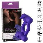 Silicone Rechargeable Triple Orgasm Enhancer Couple’s Cock Ring Purple from California Exotic Novelties. Maximize your pleasure when you slip into the Silicone Rechargeable Triple Orgasm Enhancer. While the stretchy ring holds tight, the thrilling dual teasers deliver full contact stimulation to multiple pleasure zones. The plush body safe Silicone ring works to improve stamina and girth to make your lover moan for more, more, more. The tight and stretchy ring maximizes sensitivity and elevates sensation throughout letting you enjoy longer, more powerful pleasure. Reach next level pleasure with 12 vibration functions and dual rabbit teasers made to leave both partners in a state of orgasmic bliss. Two flickering rabbit teasers thrill with deep, rumbling vibrations from two powerful motors. Take this waterproof ring for a dip and embrace those powerful vibrations anywhere you want to get wet. This passionate cock ring remembers exactly how you like it with the state of the art memory chip and can pick up on the last function used. Recharge your pleasure in no time with a charge time of 1.5 hours and enjoy play time for up to 80 minutes. Specifications: SKU SE-1843-50-3. ColorPurple. Power Source USB. 1 year warranty. Material type Silicone. Features: Phthalate free, Waterproof vibrating cock ring, Rechargeable via a USB port, Vibrates. Measurements: 4.25 inches by 2.75 inches Couple’s Enhancer Cock Ring. 2.75 inches Cock ring diameter. Bulk weight 3.8 ounces. Package 4.8 ounces. Package 2 inches by 4 inches by 8.5 inches. Categories: Vibrators, Sex Toys for Couples, Love Rings, Couple’s Cock Rings, Vibrating Love Rings, Rechargeable Vibrators. 2023.