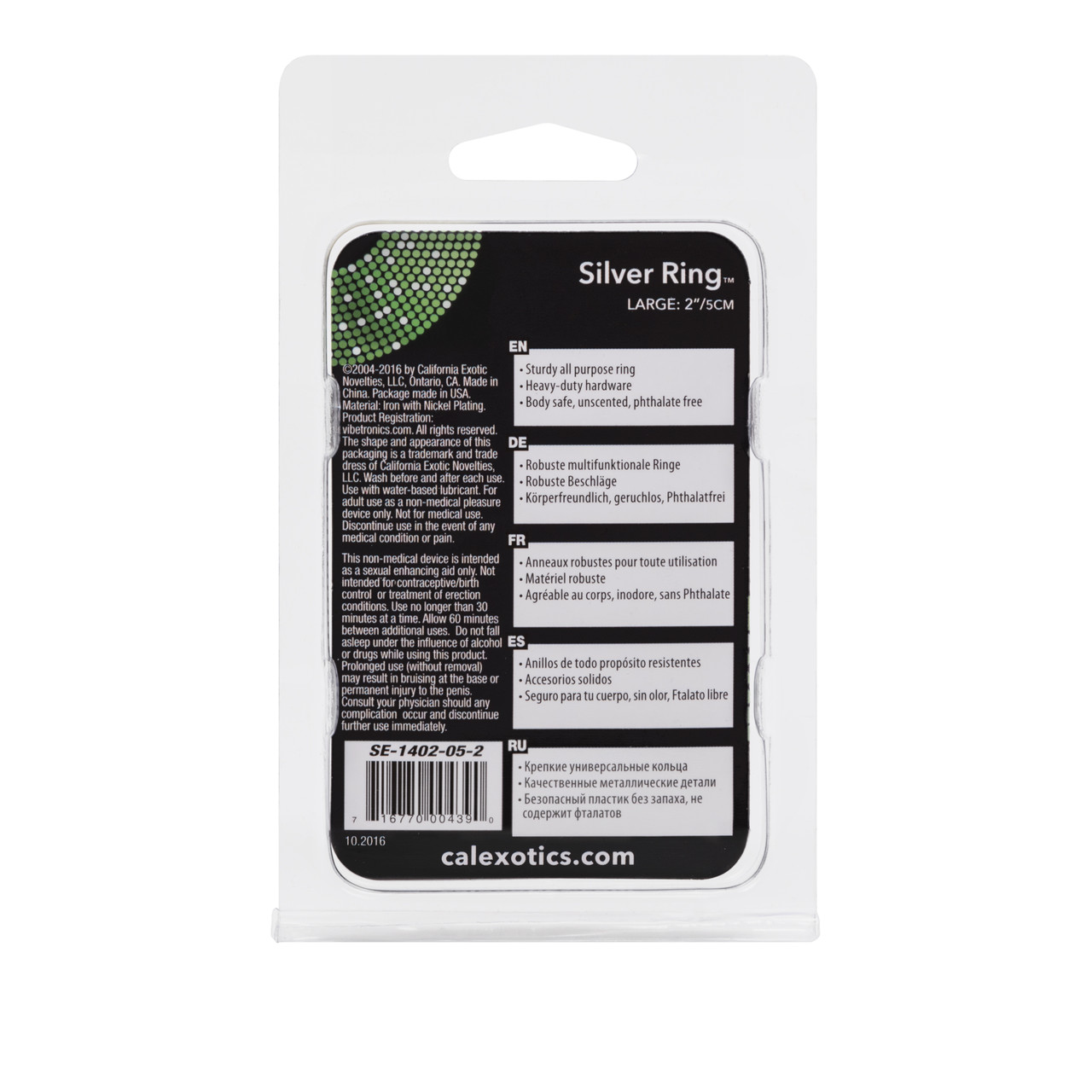 Silver Ring Large from California Exotic Novelties. Enhance your intimate performance and orgasmic climax with the Silver Ring. The sleek and smooth Metal Adornment Ring is designed for erotic arousal and stimulation pleasure and provides a comfortable, supportive fit. The easy to use, Ring instantly boosts erection stamina and is ideal for the first time and experienced users. Use your imagination, and slip on the Metal Enhancer Ring to explore your wildest dreams and secret fantasies. Enjoy unlimited tantalizing tingles and sensations with this enhancer. The enhancer Ring is made from solid Steel with Silver Plating Finish. The Metal Ring Shaped Enhancer slips over the Erect Penis to maintain an erection, and to increase sensitivity and stimulation pleasure, for heightened orgasmic satisfaction every time. When wearing the Ring for extended self gratification pleasure, or intimate erotic couples play. Use a quality water based personal lubricant with this sex toy, to elevate your experience. The discreet Enhancer Ring is perfect for spontaneous exotic exploration, whenever you are in the mood for frisky fun. The Metal Enhancer Ring is easy to fit and ensures comfortable non-slip support for peak performance. Slip on the enhancer and enjoy teasing tingles and intensely satisfying pleasure. The Ring is designed to extend and intensify your erotic satisfaction. Before and after every use, clean the Large Metallic Ring with an adult toy cleaner spray, or wash in warm, soapy water. Rinse with warm water. Pat dry before storing. Solid Metal Cock Ring with 2.00 inches opening. Metal Adornment Rings. Steel with Silver Plating. Safe and pure for body and pleasure. Bulk weight 1.4 ounces. Silver Ring is a registered trademark for California Exotic Novelties. Sex toys and sexual wellness. Colors may vary. Made in China. Packaged in the USA. Categories: Bondage, Fetish, Kink, Love Rings, Sex Toys for Couples, Men, Cock Rings, Men’s Fetish Wear, Men’s Cock and Ball Gear. 2023.