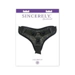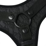 Sportsheets Midnight Lace Strap On Black One size fits most. Luxurious to the eyes and to the touch, this gorgeous strap-on harness allows you to engage in penetrative sex with elegance. The simple panel design leaves little to the imagination as your plaything devours you with their senses. With 4 points of adjustment, you will be able to achieve the perfect fit, the jock-style straps sensually hugging your ass. Just insert your favorite dildo in the O-ring, or if your dildo is a different size, easily unsnap the O-ring to switch it out for another. You will captivate your partner’s gaze long before you penetrate their hole. The velvety, fine lace fabric of this strap on is part of the pleasure as it comfortably hugs your contours. Keeps your toy securely in place. 4 way adjustable harness fits up to 60 inches hips. Accommodates dildos with a flared base. Machine washable. Materials: polypropylene, polyester, polyurethane, nylon, nickel free metal, Spandex, nitrile. Includes 1 4 way adjustable harness fits up to 60 inches hips, interchangeable rubber. O ring 1.5 inches. Please note harness only. Limited Lifetime Warranty, Sportsheets will replace any defective product. If the product is not available, Sportsheets will replace it with a similar product of similar function. No video. 2021.
