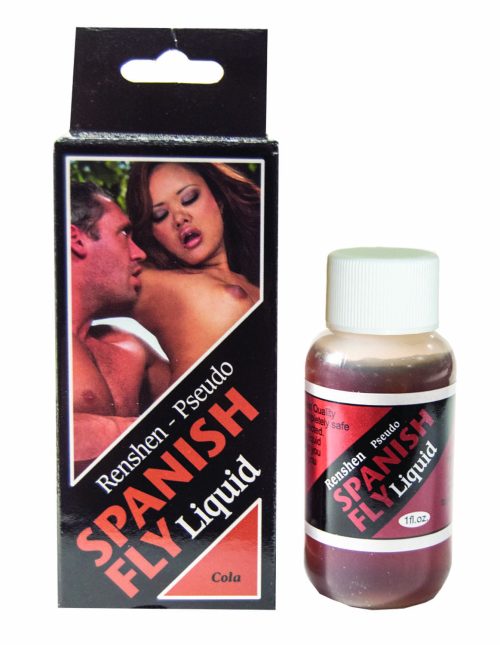 Spanish Fly Liquid Cola Pseudo Renshen 1 fluid ounce Bottle from Nasstoys. The Original flavored Spanish fly liquid. A Nasstoy’s proven best seller for over 25 years! Spanish Fly Liquid comes in eight different flavors: Cherry, Creamy Coffee, Cola, Lemon, Lime, Mint, Orange and Strawberry. Each sold separately. Ingredients: Albus Whey, Capsicum, Amomum Singlber, Ginseng. X-Rated graphic box, X-Rated materials contain nudity and depictions of a sexual nature. Cola flavored Spanish Fly Liquid Cola from Nasstoys of New York. Categories: Erotic Body Lotions, Meds and Supplements, Sex Toys for Couples, Health and Beauty Aids, Adult Gags, Gifts and Novelties, Sex Drinks. The finest in erotica from Nasstoys. Restricted, Amazon Restricted. 2023.
