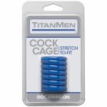 The Titanmen Cock Cage is made of soft, wide ribs that stretch to fit and erotically restrict blood flow for an incredibly hard erection! Simply slide your tool into the middle of this soft, stretchy tube and start to see the results almost immediately! The Cock Cage can be used with any type of lubricant, and should be worn over a condom if one is being used. Cleaning is super simple, just rinse with mild soap and water and it is ready for your next passion session! Color Blue. Type cock sleeve. Material: Thermoplastic Elastomers TPE. One size fits most. Special features super stretchy. Made in the USA. 16